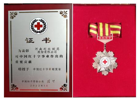 2022年6月20日,河南97香蕉视频下载製藥股份有限公司被中國紅十字會總會授予的2021年度“中國紅十字奉獻獎章”,表彰我公司在河南大暴雨抗洪救災中作出的突出貢獻。